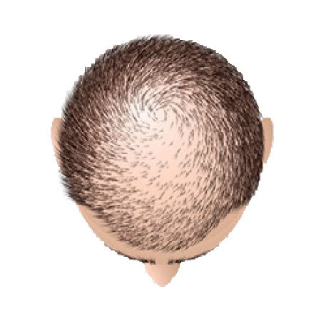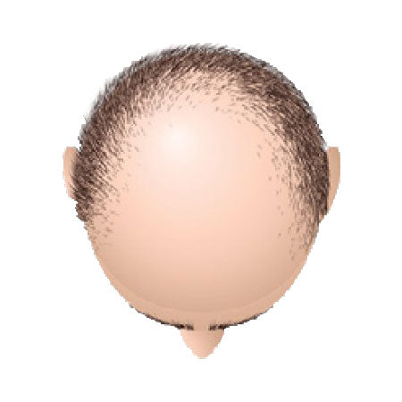 7️⃣ Étape 7 : Calvitie avancée, seuls quelques cheveux persistent sur les côtés et l’arrière.